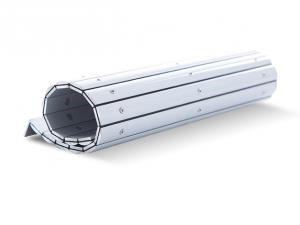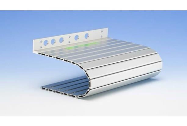 " Our Alutec link-type cover systems reduce the risk of accidents on the machine and their layout and design provide an optimum protection for the machine against swarf and coolant. Because of their low weight, these systems allow for high speed movement and an acceleration of up to 2g. We supply ready-for-assembly apron cover systems to your specifications at short notice, including any components required for assembly, if necessary. The type is available in two section sizes. It is a combination of extremely stable hollow aluminium sections and a carrier fabric of synthetic or stainless steel band. This is used when the customer requires an accessible solution. The aprons with a steel band as carrier material are joinedwith a high-performance bond of the required flexibility. These steel band aprons can therefore be used permanentlyn on roller blind systems as well."