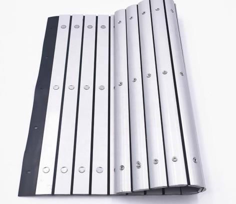 Gurukrupa Engineeringis leading Manufacturer of Flexible Aluminum Apron Cover. These Apron Covers are made out of anodized aluminum lamellas attached by flexible and wear-resistant polyurethane joins. Spoiled pieces may be replaced in the event of deterioration to prevent an unnecessary shutdown of the production line. These tools are developed to be suitable for the protection of various installation components with space limitations.